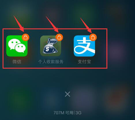 启动一次个人收款服务、支付宝、微信。然后点击手机底部硬件按钮中的“设置”按钮,调起“一键清理”功能,按住图标向下拖拽,就可以把App锁住。