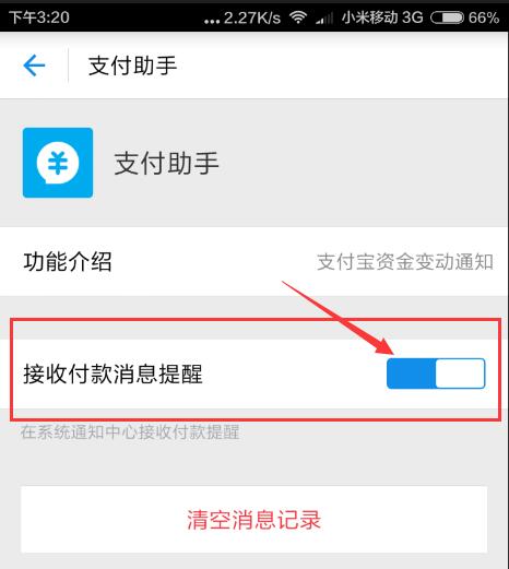 在支付宝主页,点支付助手,进入支付助手设置,打开提醒